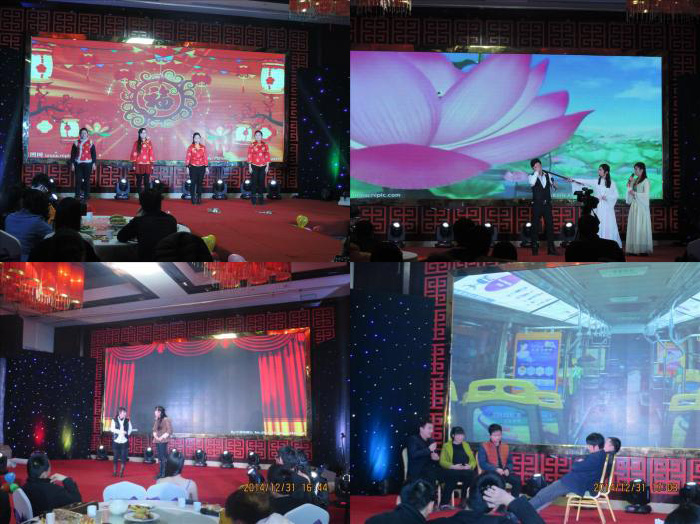 4位帥氣美麗的主持人上臺(tái),公司總經(jīng)理致辭,精彩節(jié)目已經(jīng)開始。